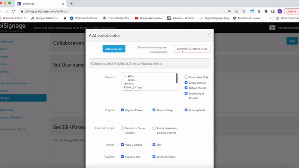 Collaborators in PiSignage: Delegate Account Management with Confidence