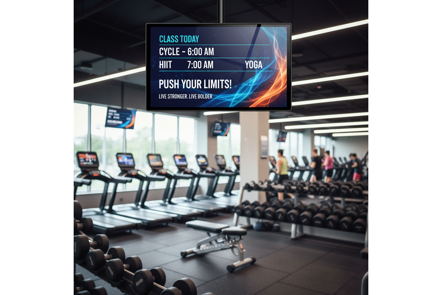 A fitness studio could run lobby announcements and class schedules on existing Smart TVs without buying new hardware or signing contracts.