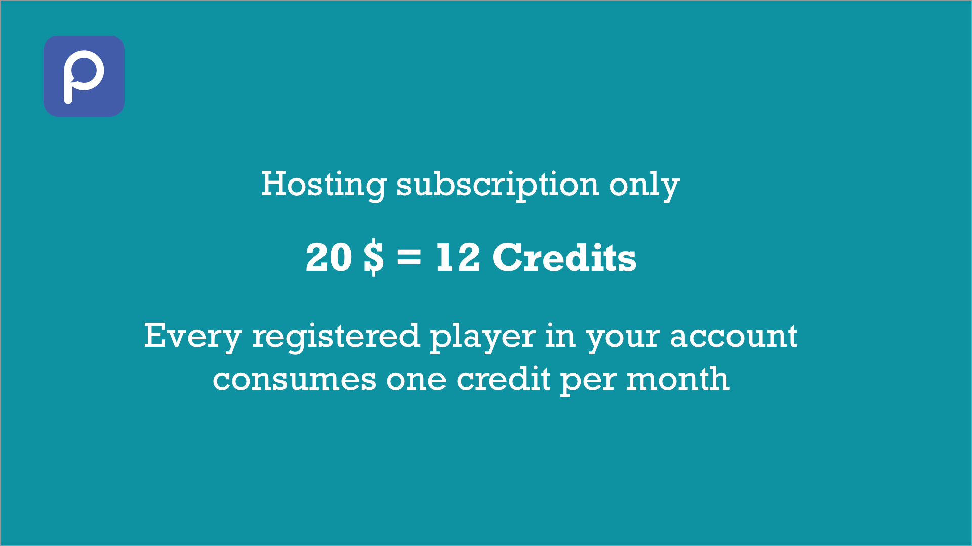 So if you have 4 registered players and decide to buy a Subscription licence for 20$ , then you will get 12 credits with which you can manage those 4 players for 3 months.